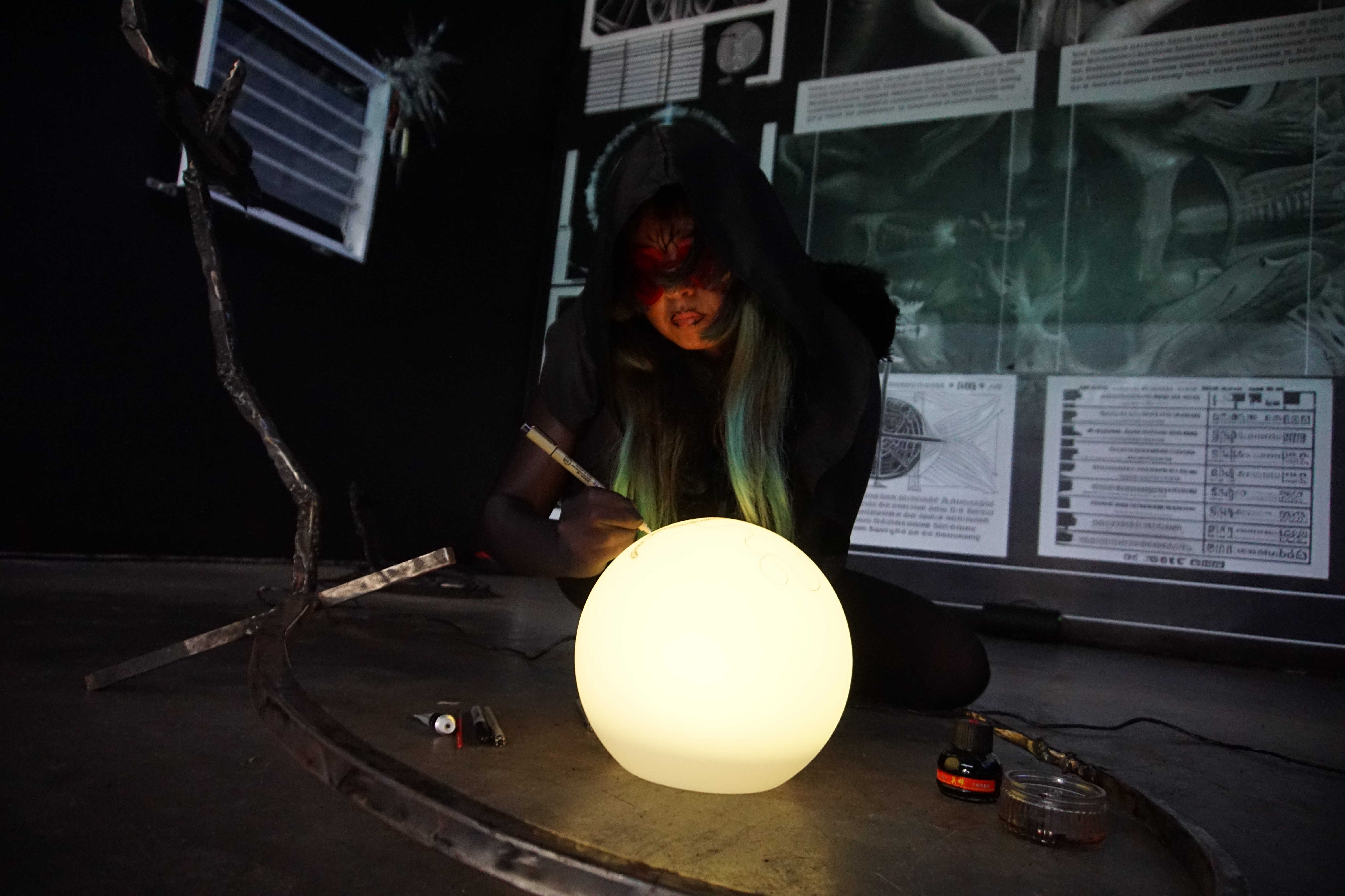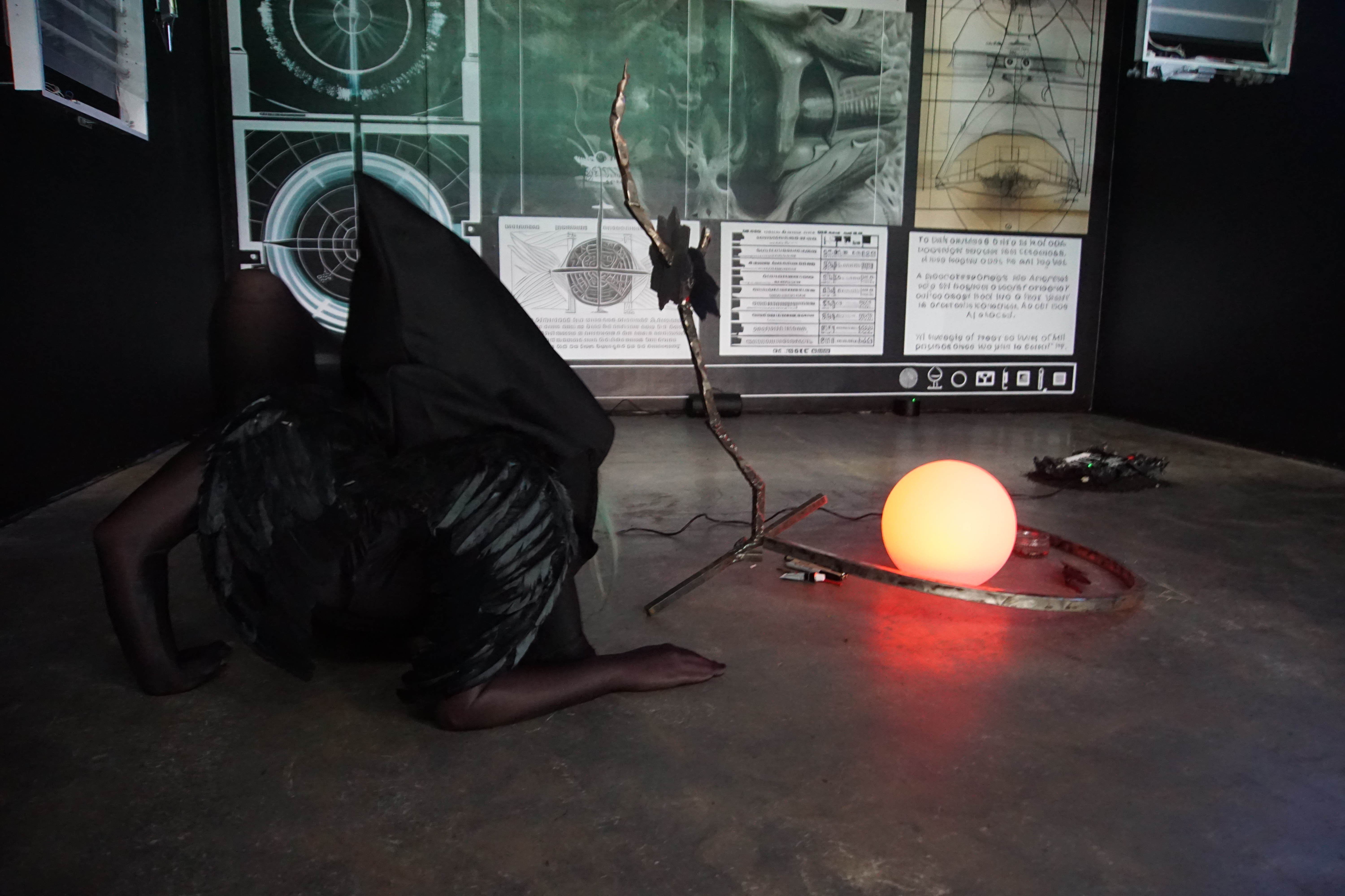 Emboldened by humanityβs accelerating collective shadow integration of the settler-colonial military industrial complex, this 4-hour durational performance writhes through schemata of possible occult praxes: a coagulatio of solarisation*, catastrophic astrology and active extinctionism to obscure - and symbolically subdue - the Right Hand Pathβs dawning, obliterating sunlight into an emancipatory blackness.